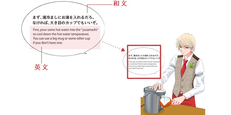 - キャラクターがお茶の淹れ方を紹介しているので、